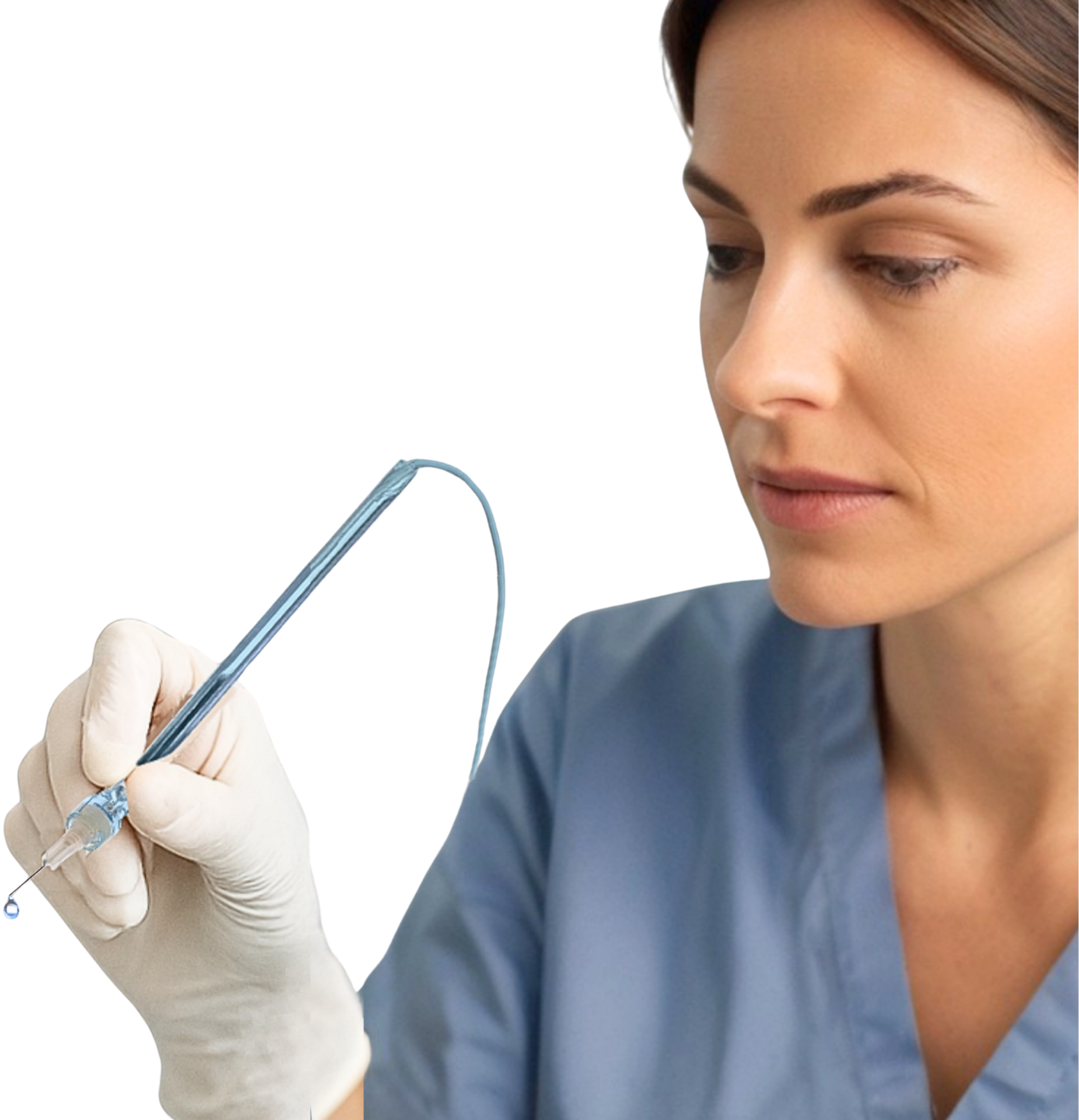 Unikalna, a jednocześnie prosta manualnie technika prowadzenie igły z rotacją zwiększa precyzję deponowania i skuteczność zwłaszcza w technikach przewodowych.
